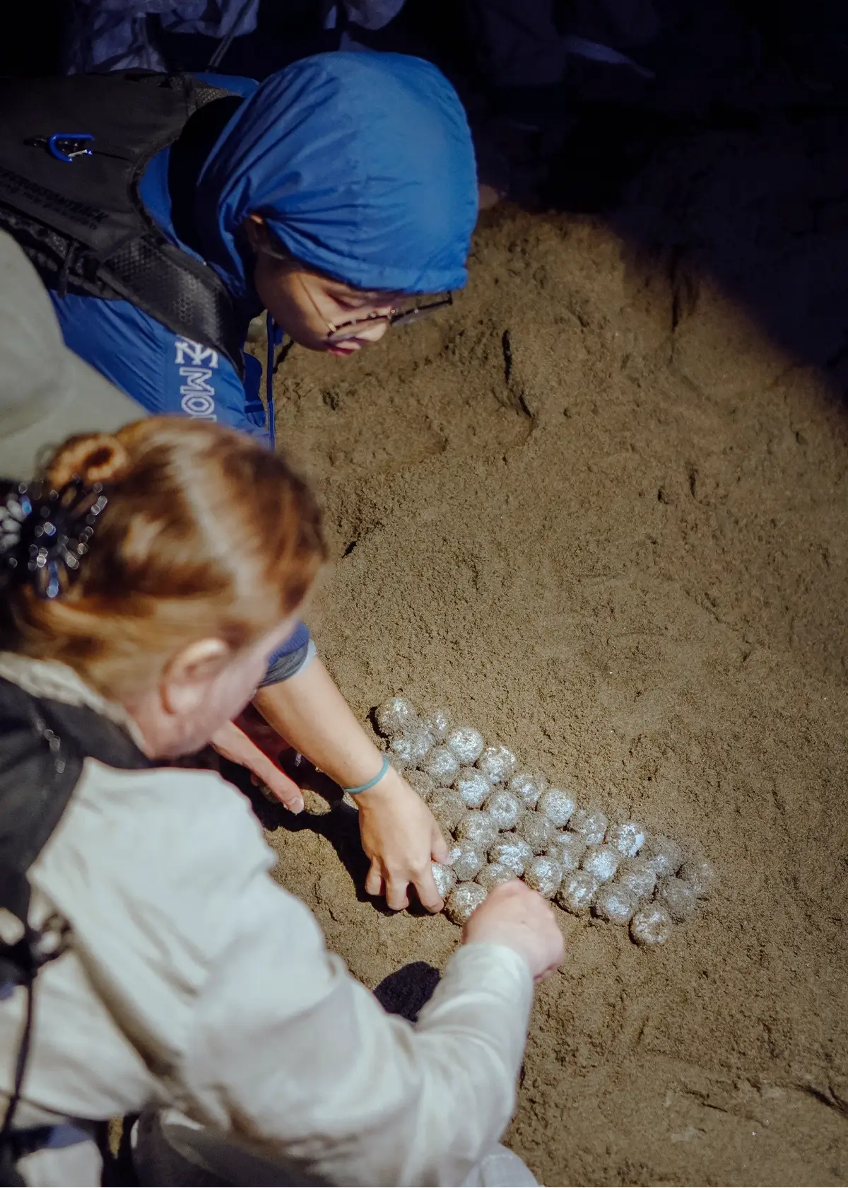 Witness sea turtles nesting at night.